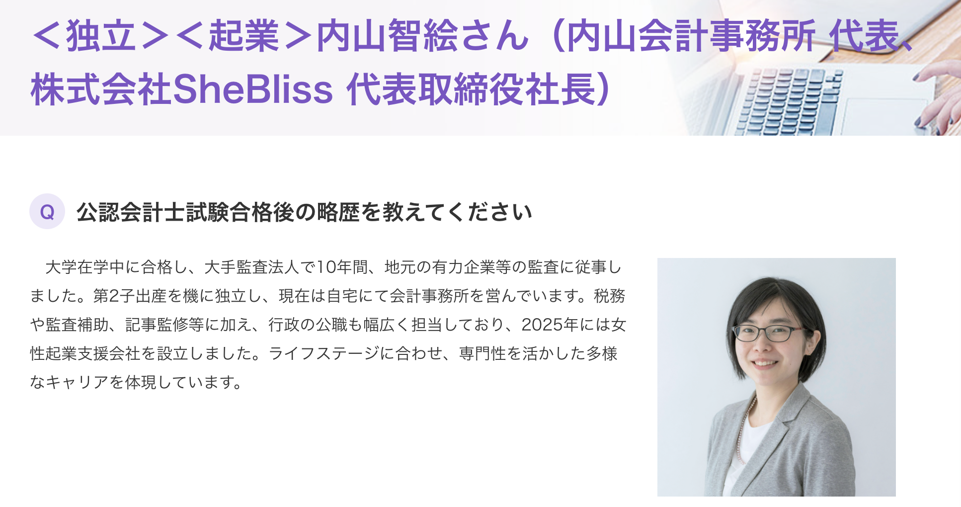 <独立><起業>内山智絵さん(内山会計事務所 代表、株式会社SheBliss 代表取締役社長) | 日本公認会計...