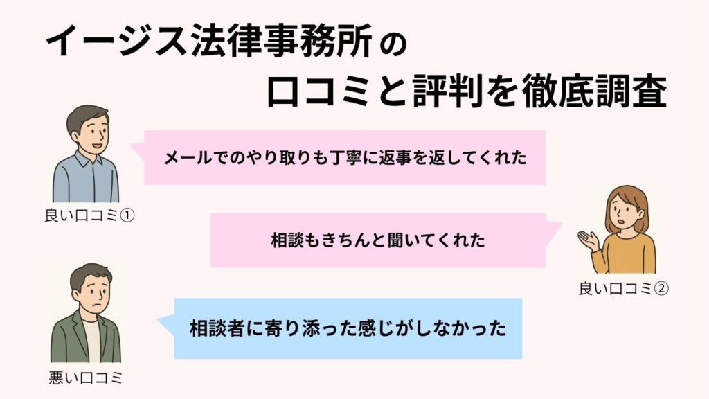 一方で、「連絡がしつこい」などの悪い評判もありましたが、これは裏を返せば、問題解決に向けた事務所側の熱心さの表れとも言えるでしょう。