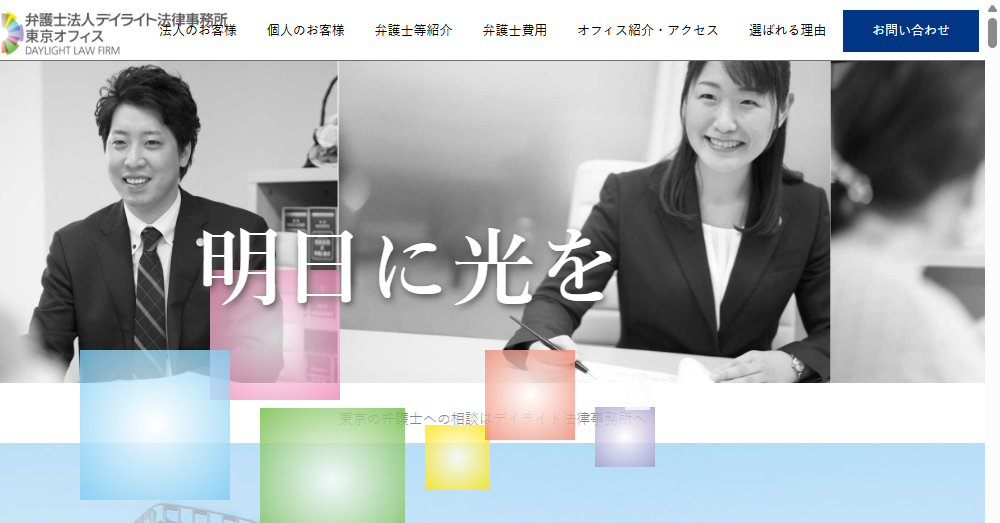 - 東京の弁護士集団として、借金問題や離婚などの専門分野に特化し、高い解決実績を誇るデイライト法律事務所。具体的なニーズに応じた質の高いリーガルサービスを提供します。