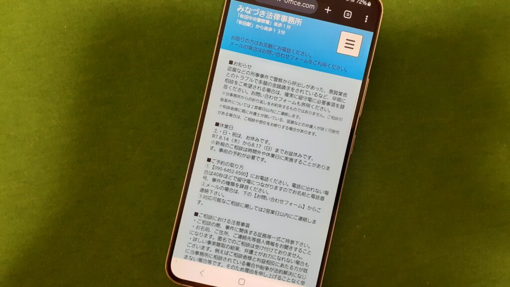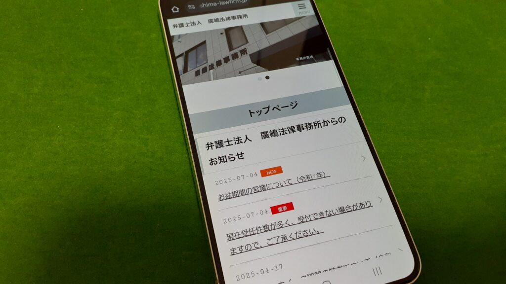 事務所では債務整理・ 刑事事件 ・金銭トラブルなど、幅広い法的問題に対応。