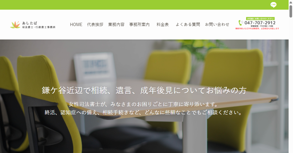 あしたば司法書士・行政書士事務所は千葉県鎌ケ谷市南初富に所在し、相続手続きや遺言書作成支援を中心に幅広い法律サービスを専門的に提供しています。