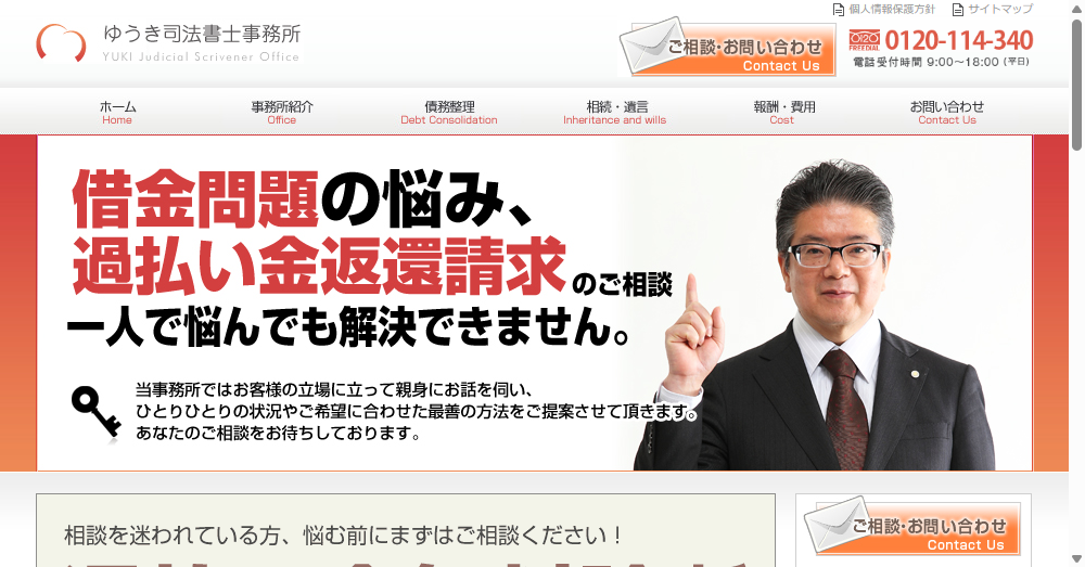 ゆうき司法書士事務所は債務整理や過払い金返還請求を専門とする法律事務所で、大阪市中央区に位置しています。