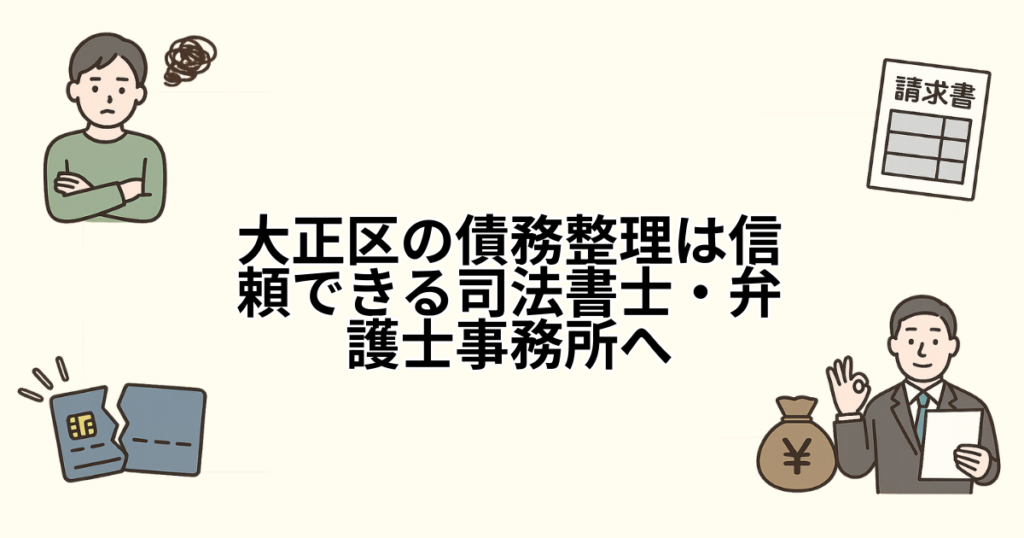 大正区で借金の返済が困難になっていて、債務整理を検討されていますか? 債務整理は、法的に認められた手続きによって返済負担を軽減し、生活を立て直すための有効な手段です。 しかし、その結果は依頼する専門家の選び方に大きく左右されます。 この記事... -