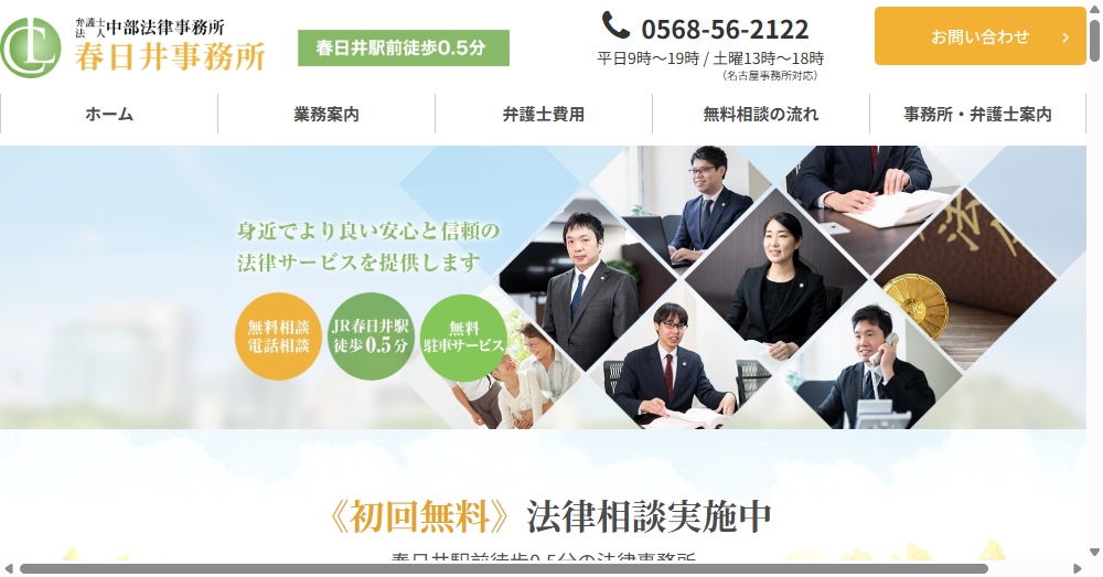 • 春日井駅から徒歩0.5分の好立地に位置し、電話やオンラインでの無料法律相談を行っており、顧客のニーズに応じた柔軟な対応を実現しています。