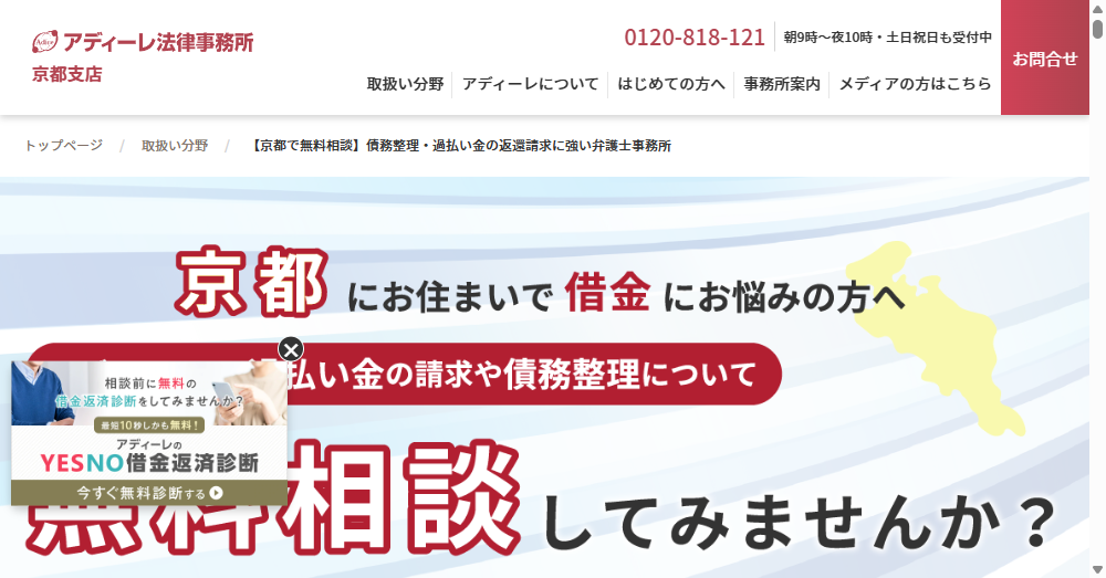 | 相談可能形式 | 債務整理(任意整理、自己破産、個人再生)、過払い金請求 |