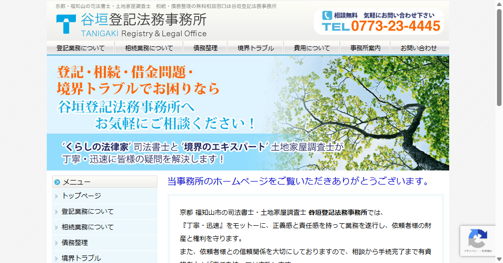 谷垣登記法務事務所は京都・福知山に拠点を置く司法書士および土地家屋調査士事務所であり、相続業務や債務整理の専門的なサービスを提供しています。