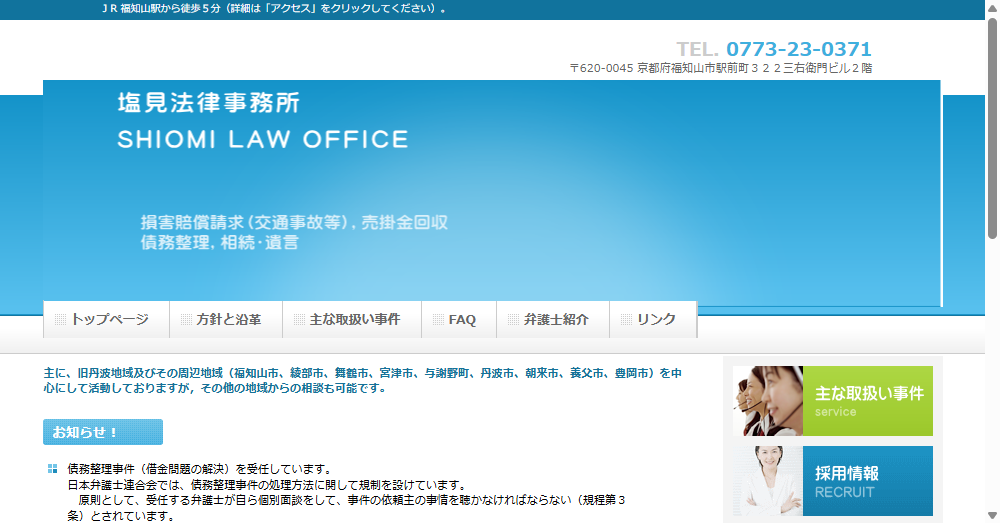 福知山市を中心に、債務整理の実績が豊富で無料相談を実施している法律事務所も多数あります。
