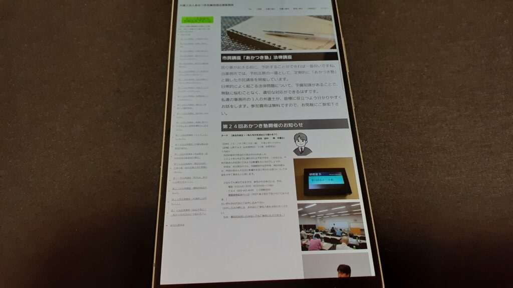 - 予防法務の一環として、無料の市民向け法律講座「あかつき塾」を24回以上開催。身近な法律問題を分かりやすく解説し、トラブルを未然に防ぐお手伝いをします。