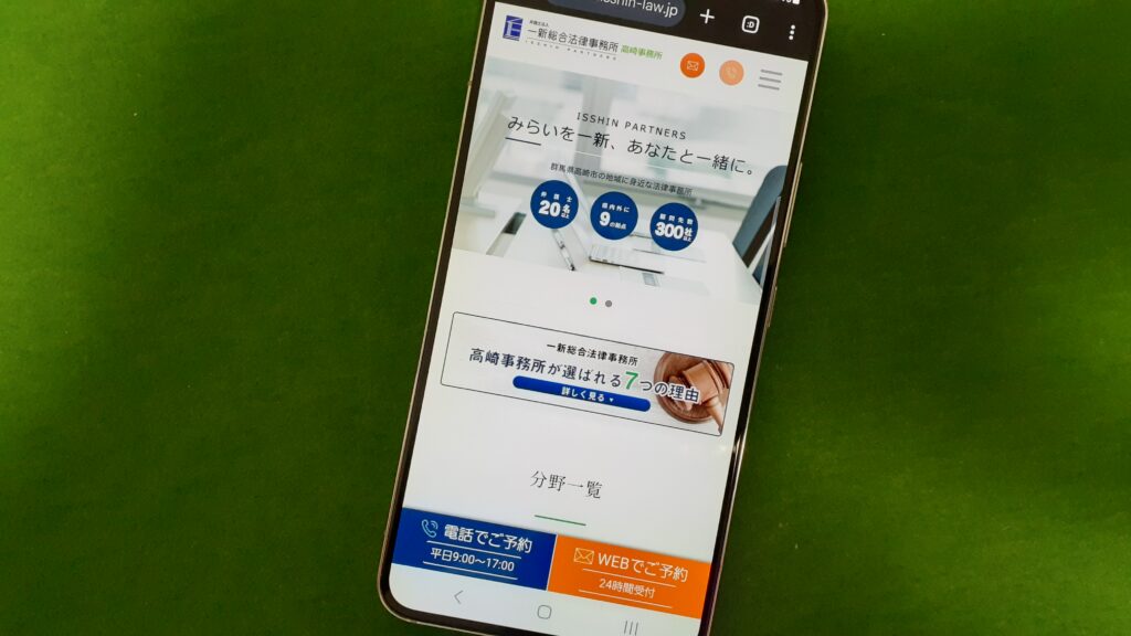 - 法律相談はWEBや電話で手軽に予約可能。事務所には提携駐車場も完備しているため、前橋市内外からお車でも安心してご来所いただけます。