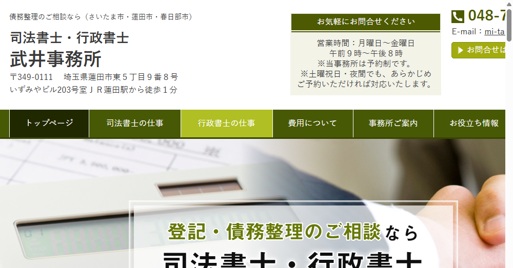 司法書士・行政書士武井事務所は埼玉県蓮田市に位置し債務整理に特化した法律サービスを提供しています。