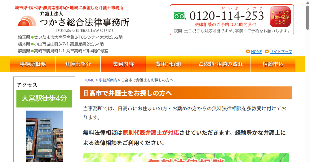 - 日高市での無料法律相談を提供し、経験豊富な弁護士が親身に対応、初回60分無料で法律的な不安を解消します。