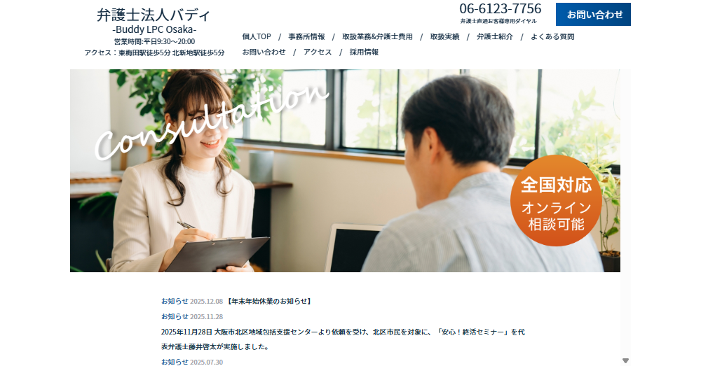 弁護士法人バディ大阪本店事務所は、法律相談を通じて個人顧客の悩みを解決し、信頼される法律事務所です。
