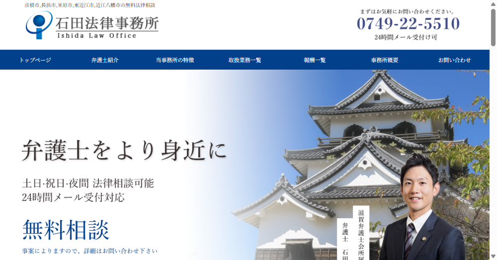 石田法律事務所は、滋賀県彦根市に位置し、地域密着型の法律サポートを提供する弁護士事務所です。