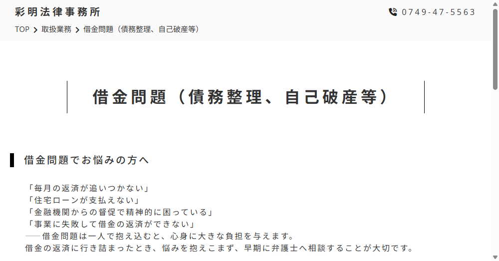 滋賀県彦根市に位置する彩明法律事務所は、借金問題に特化した法律サービスを提供する弁護士事務所です。