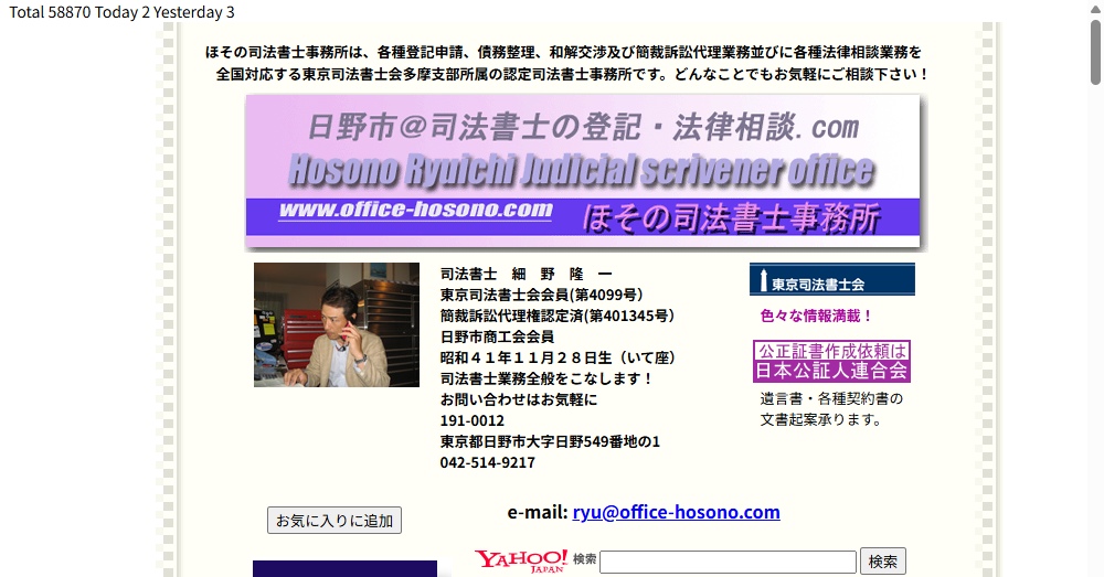 ほその司法書士事務所は、東京都日野市に位置する認定司法書士事務所であり、法律相談や登記業務を提供しています。