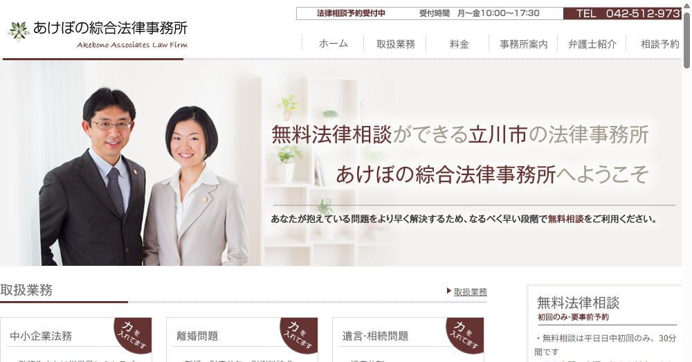 - 地域密着型の法律事務所として、離婚や相続、企業法務など幅広い法律問題に対応し、昭島市の方々に信頼されるリーガルサービスを提供しています。