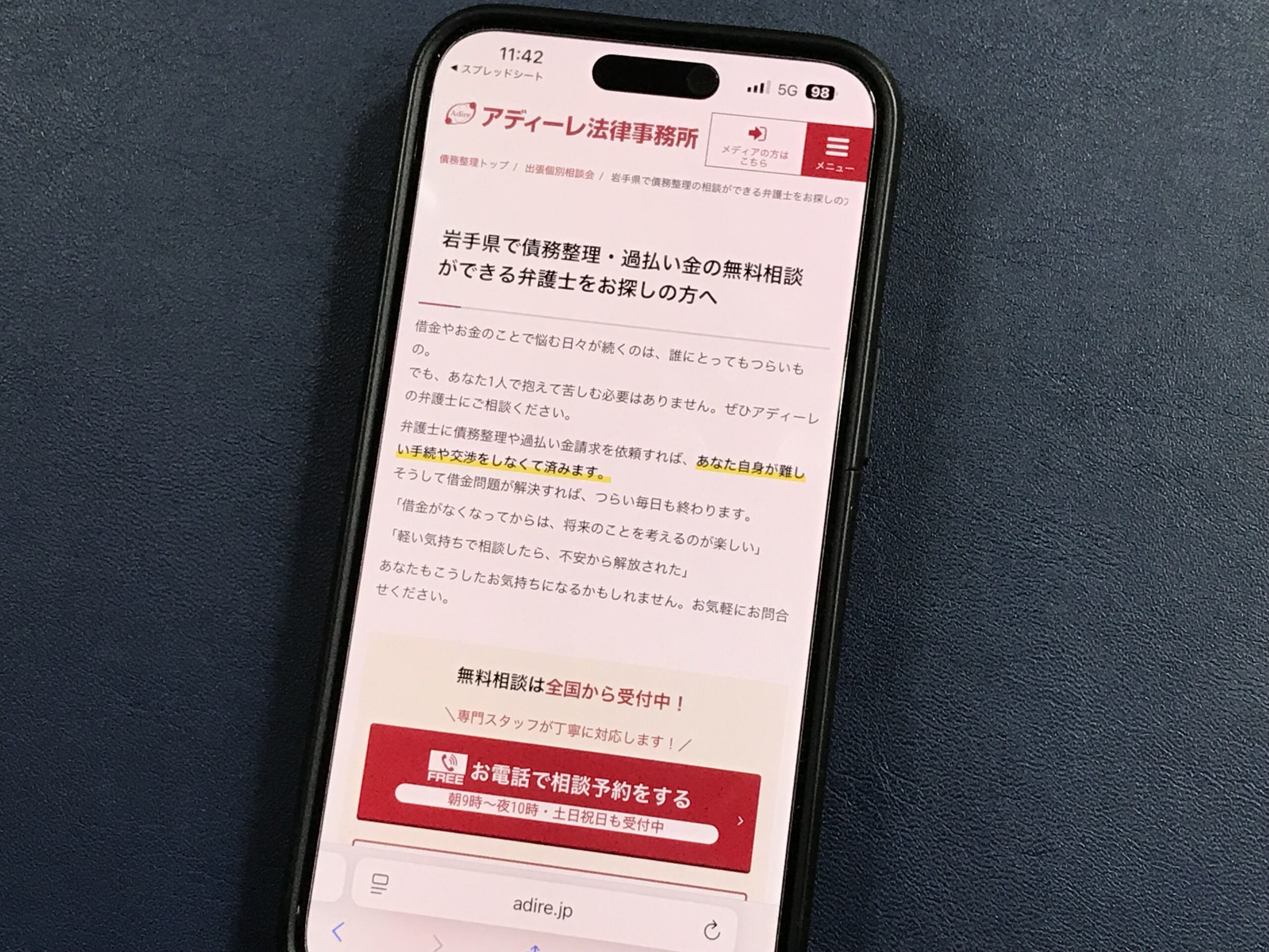 アディーレ法律事務所は岩手県を拠点にし、債務整理や過払い金請求の専門家として高評価のサービスを提供しています。