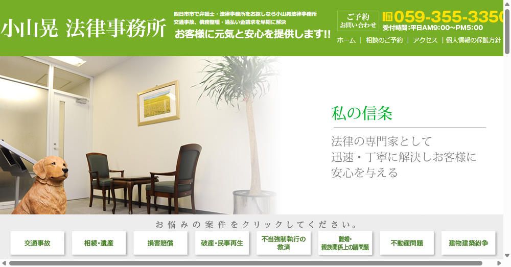 小山晃法律事務所は三重県四日市市に位置し、交通事故や債務整理、借金問題などに特化したサービスを提供する法律事務所です。
