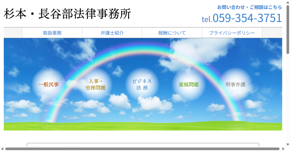 杉本・長谷部法律事務所は三重県四日市市に位置し、昭和55年に弁護士杉本によって開設されて以来、40年にわたり地域の法的ニーズに応えてきた法律事務所です。