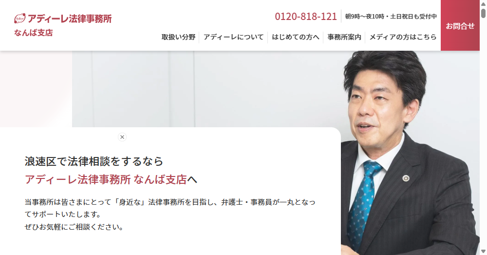 アディーレ法律事務所なんば支店は、大阪市浪速区で身近で信頼できる法律サービスを提供しています。