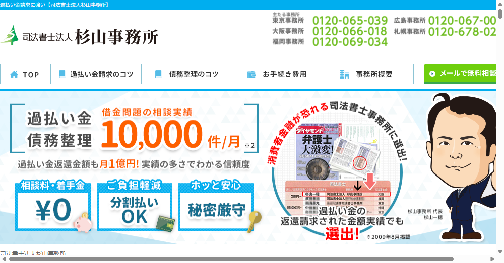 司法書士法人はたの法務事務所は債務整理や過払い金請求を専門とし、20万件以上の相談実績を持つ法律事務所です。