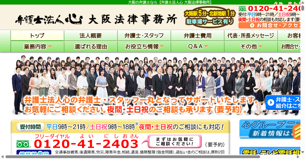 弁護士法人心 大阪法律事務所は大阪駅前に位置する法律事務所で、交通事故や相続、債務整理、過払い金など幅広い法律問題に対応しています。