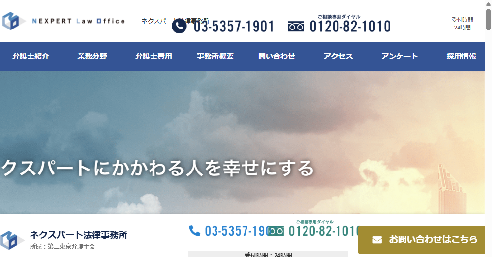 ネクスパート法律事務所は24時間体制で依頼者の利益を最優先に考え、幅広い法律サービスを提供するプロフェッショナル集団です。