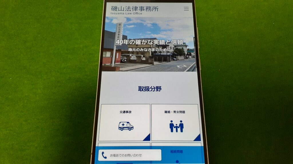 | 対応可能業務 | 交通事故、相続トラブル、債務整理(個人再生・自己破産)、過払い金の回収、労働災害、未払い残業代請求、離婚・不貞慰謝料問題、B型肝炎、刑事事件、中小企業法務 |