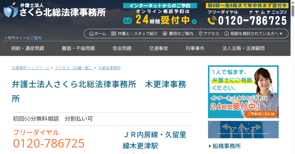 木更津駅から徒歩約0.5分という好立地のため、相談者はアクセスが容易であり、さらに営業時間は平日及び土日祝日も対応可能です。