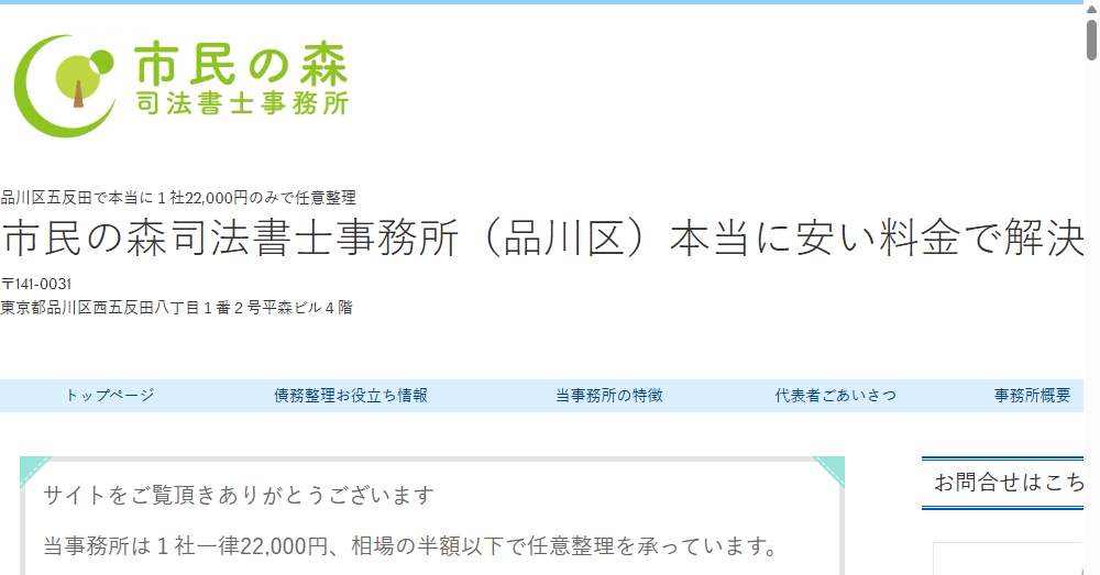 市民の森司法書士事務所は東京都品川区西五反田に位置し、主に木更津市在住の方々を対象にした借金相談や債務整理を提供する専門機関です。