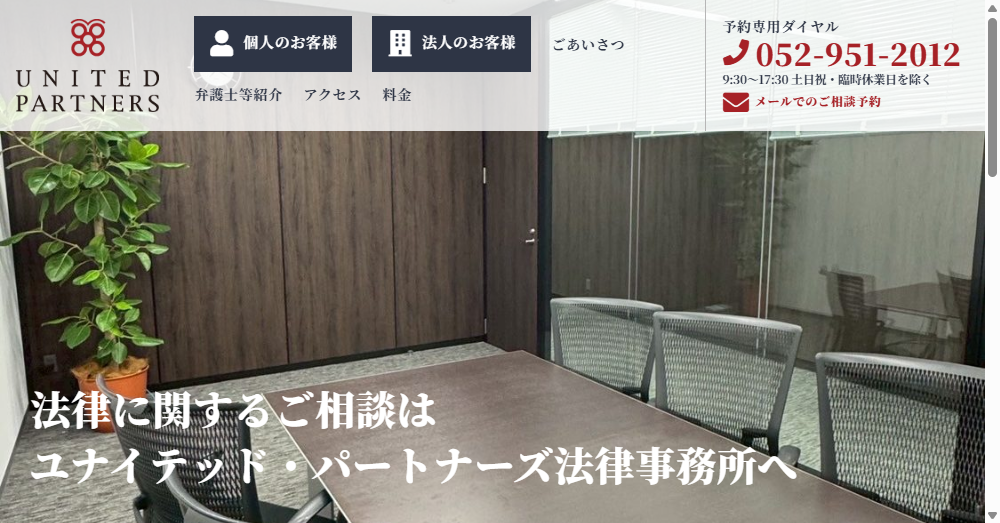 - 名古屋駅から徒歩5分の便利な立地で、24時間365日受付対応、個人・法人向けの幅広い法律サービスを展開しています。