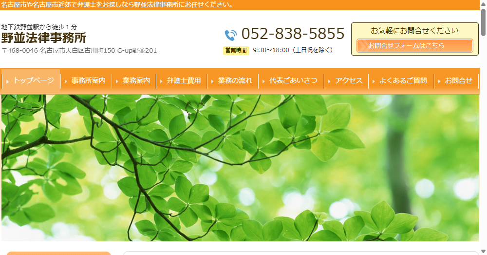 野並法律事務所は名古屋市天白区に位置する法律事務所で、地域住民や事業者の法的問題に特化した専門性を持ちます。