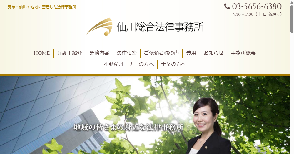 - 地域密着の仙川総合法律事務所は、女性弁護士が親身に対応し、離婚・相続・交通事故など多岐にわたる法律問題で実績を持っています。