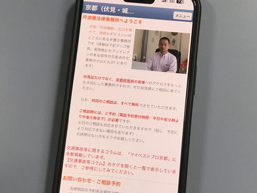 代表弁護士は都内弁護士法人勤務後、同法人の京都支店長を経て独立開業した経験を持つ。 | 利用者の状況に配慮した柔軟な相談体制を重視し、困難な状況でも解決の道を共に探す姿勢。 | ー | 公式サイトにプライバシーポリシーを明記し、個人情報の適切な管理と保護を約束している。 |