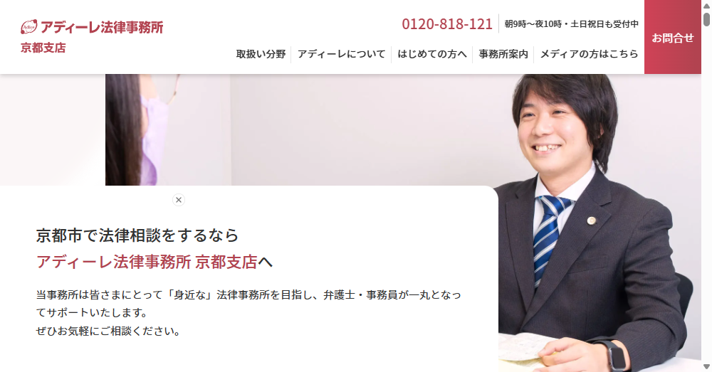 - 京都駅から徒歩3分の立地で、無料出張相談会を通じてより多くの方々に法律相談を提供し、顧客満足度95%以上を実現しています。