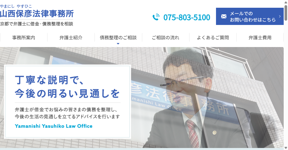 - 京都弁護士会に所属した経験豊富な弁護士が、顧客の具体的な状況に応じた最適な債務整理方法を提案し、依頼者の経済的負担を軽減します。