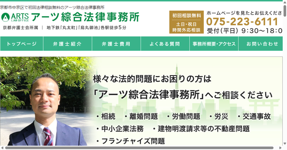 アーツ綜合法律事務所は京都市中京区に位置し、初回法律相談が無料の信頼の法律サービスを提供しています。