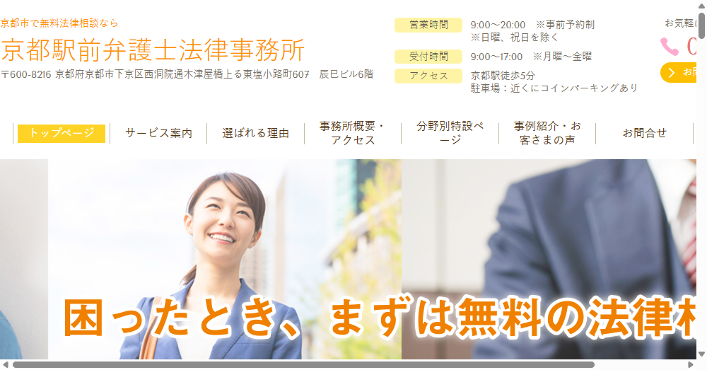 京都駅前弁護士法律事務所は京都市で無料法律相談に特化した法律事務所であり、JR京都駅から徒歩5分というアクセスの良さが魅力です。