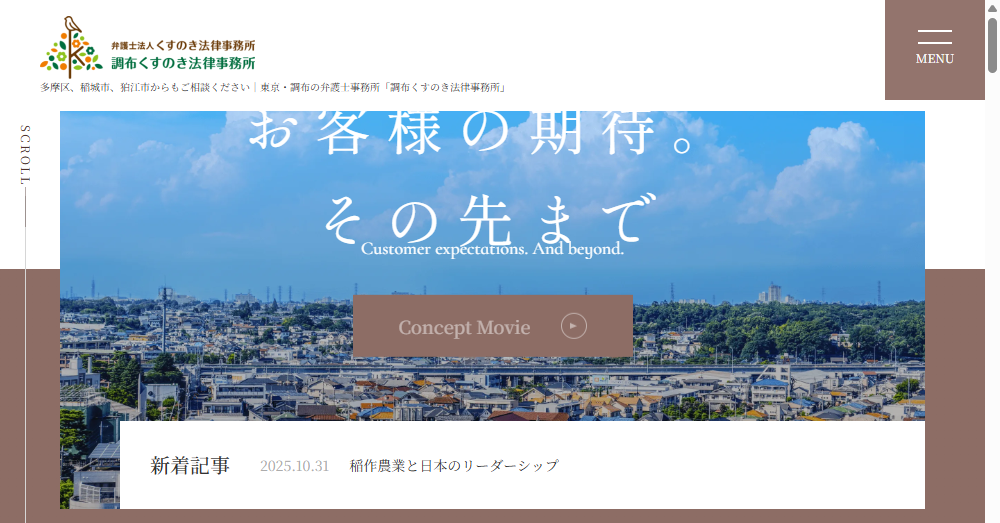 弁護士法人調布くすのき法律事務所は、地域の信頼を得る親しみやすさと高い専門性を兼ね備えた法律事務所として、持続的なサービスの改善に努めています。