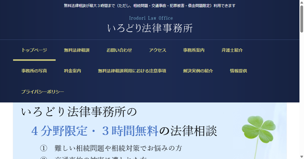 - 初回無料相談を提供し、離婚や相続、交通事故など多様な法律問題に対し、経験豊富な弁護士が的確なアドバイスを行います。
