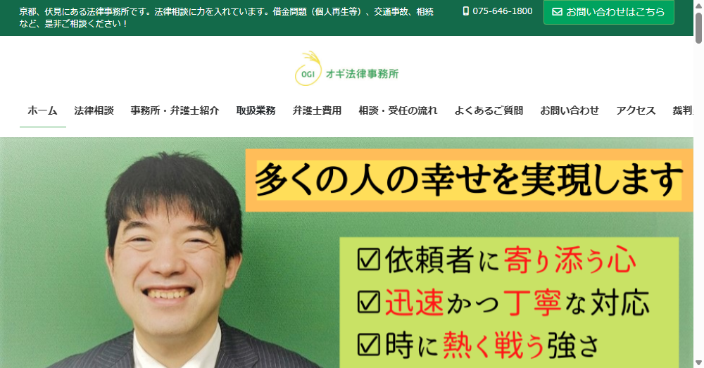 オギ法律事務所の強みは1500件以上の受任実績に基づく高い分析力と確かな対応力にあります。