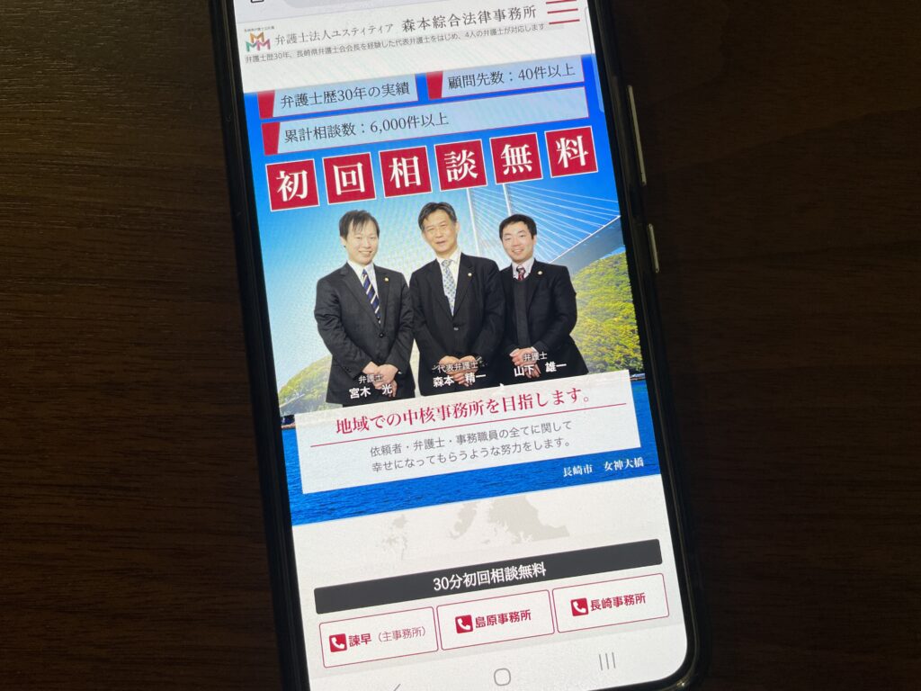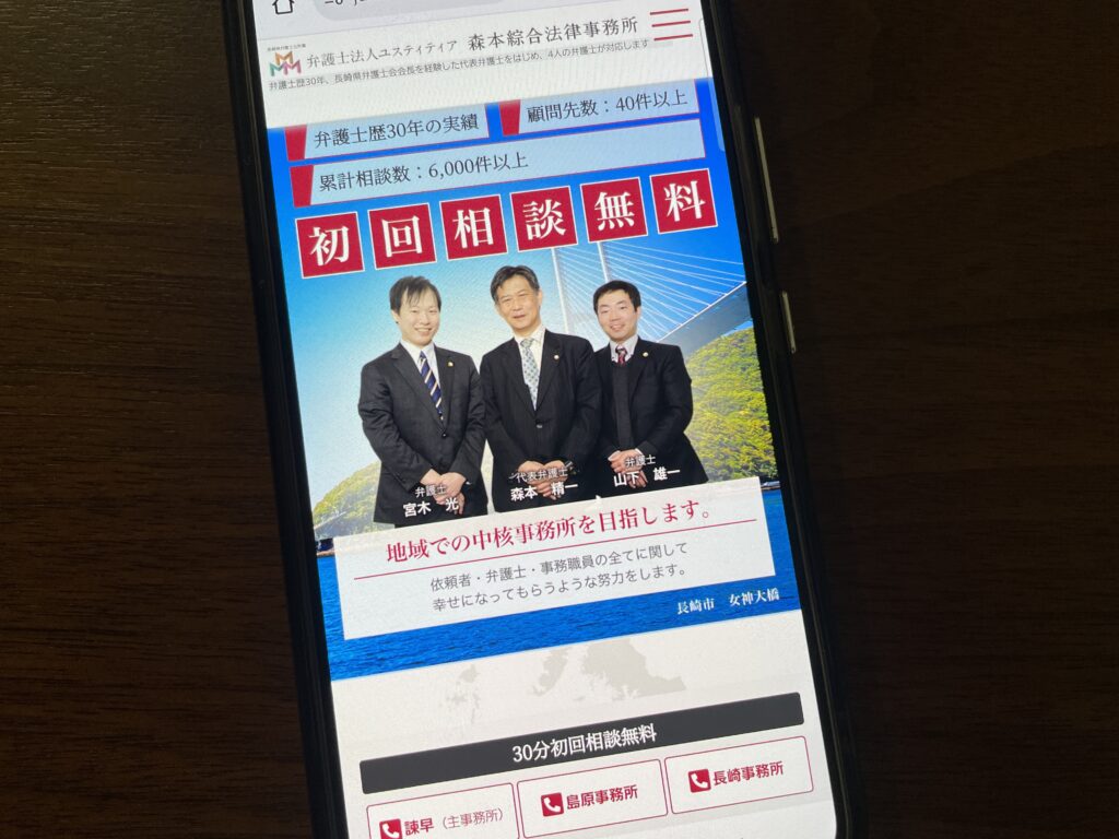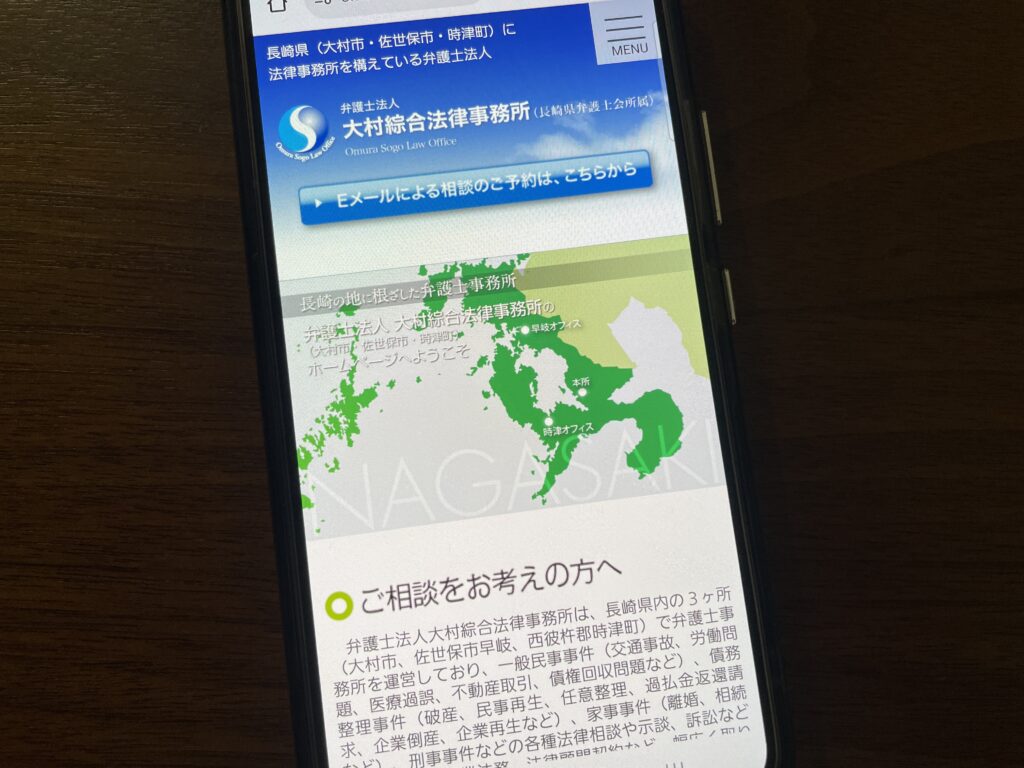 - 長崎県全域(大村市、佐世保市、長崎市、諫早市など)対応で、地域に密着した実績豊富な弁護士法人として信頼されています。