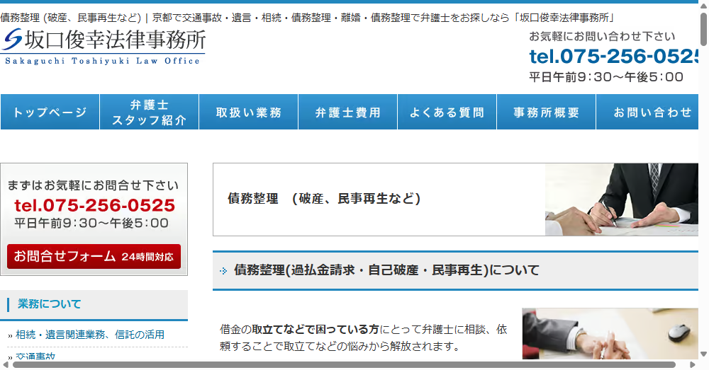 坂口俊幸法律事務所は京都を拠点に債務整理や交通事故、相続、離婚問題などの幅広い法律サービスを提供する専門事務所です。