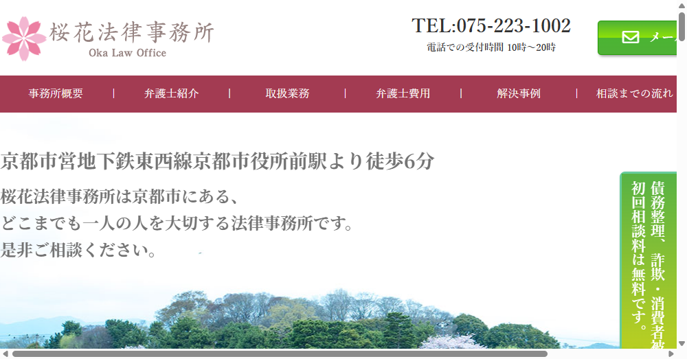桜花法律事務所は京都市に拠点を置き、離婚、債務整理、労働問題の法律サービスを専門としています。