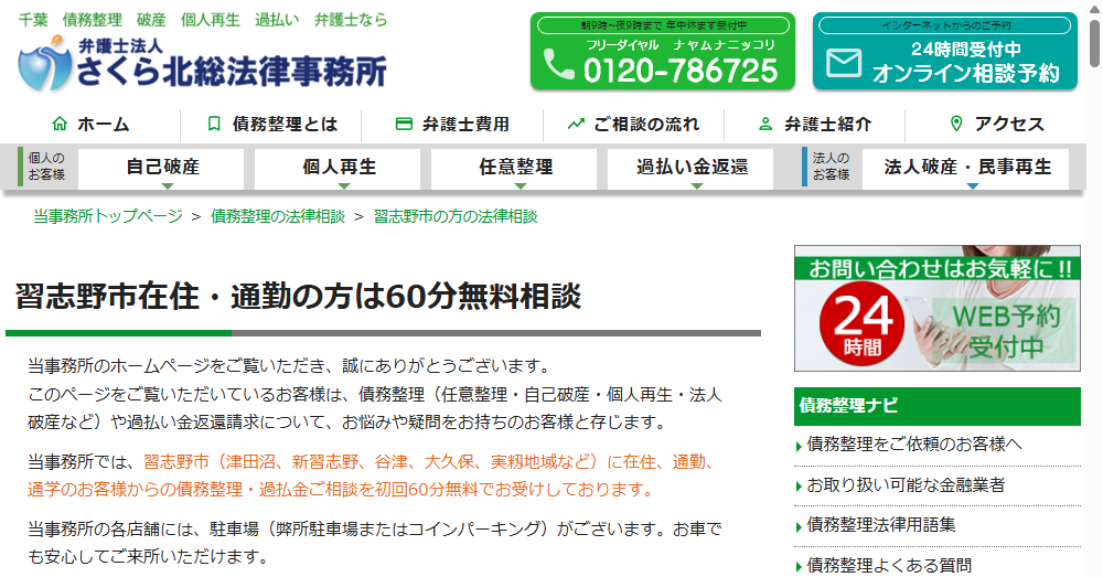 習志野市を中心に、債務整理の実績が豊富で無料相談を実施している法律事務所も多数あります。