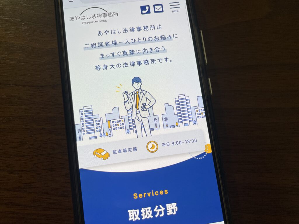 | 対応可能業務 | 債務整理・過払い金の返還請求, 交通事故の被害, 浮気・不倫の慰謝料問題, 離婚問題, 残業代請求, 退職代行, B型肝炎の給付金請求, アスベスト(石綿)健康被害の給付金・賠償金請求, 遺言・遺産相続 |