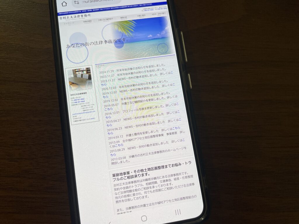 - 沖縄市で唯一、区画整理事業に特化した法律相談を提供し、北中城村アワセ土地区画整理組合理事長の実績を持つ専門事務所です。