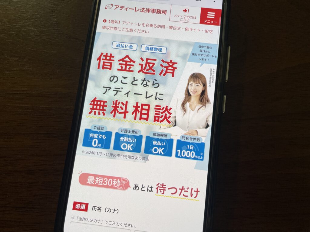 アディーレ法律事務所は、債務整理と過払い金請求を専門とする全国規模の法律事務所です。