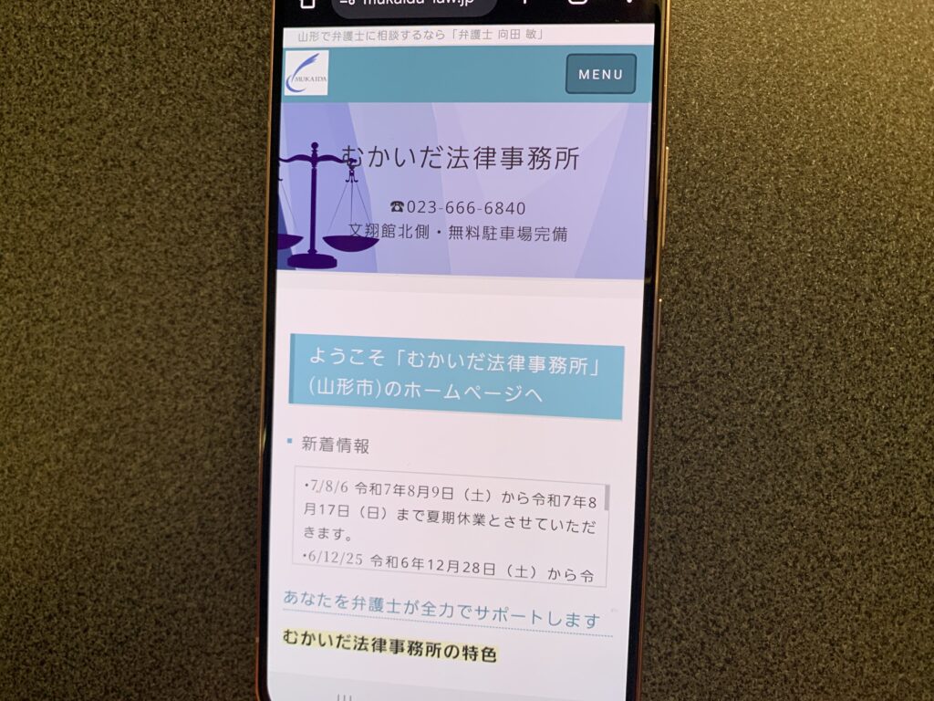 むかいだ法律事務所は山形市旅篭町に位置し、地域の法律ニーズに応える専門機関として認識されています。