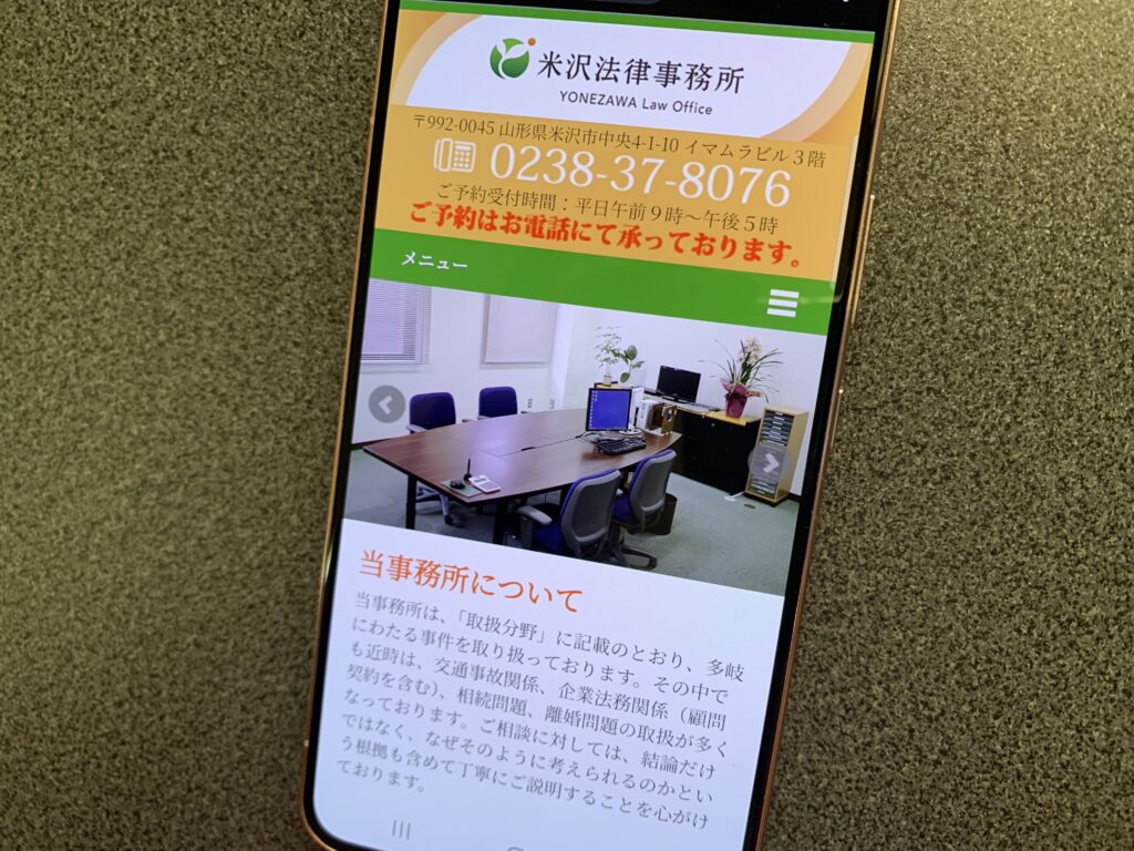 米沢法律事務所は山形県米沢市に位置し、交通事故、企業法務、相続問題、離婚問題に特化した法的サービスを提供する法律事務所です。